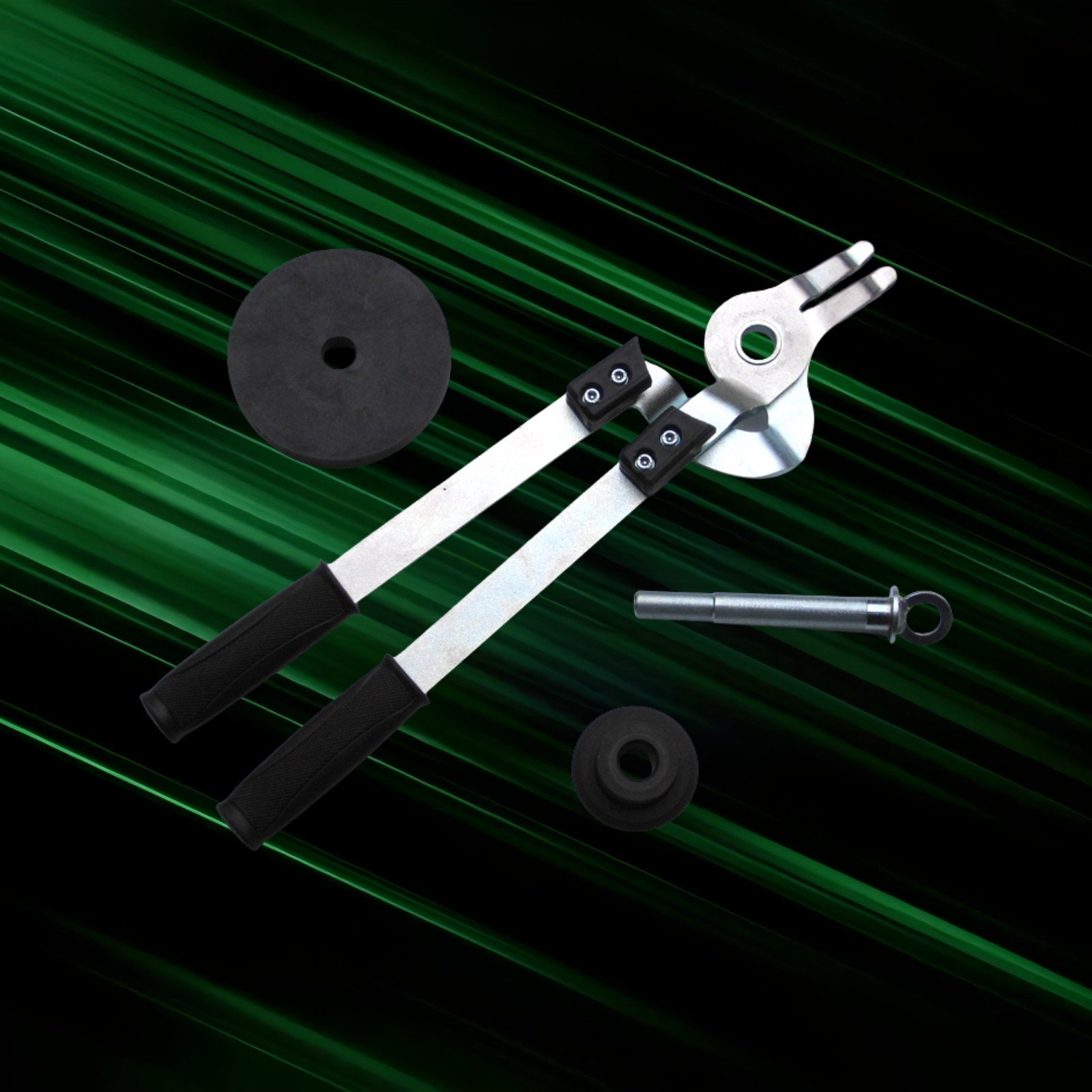 Robuste Reifenschere zur einfachen Montage und Demontage von Kartreifen auf und von der Felge – ideal für den Einsatz im Kartsport.